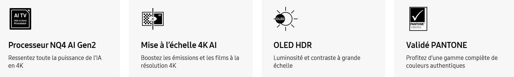 * L’expérience de visionnage peut varier selon les types de contenu et le format. * La mise à l’échelle 4K AI peut ne pas s’appliquer à la connexion PC et au mode jeu.