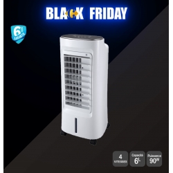 Il est composé de 4 vitesses et a une capacité d'eau de 6 litres avec affichage du niveau de remplissage. Timer de 1 à 9h. Mode de ventilation : Normal-Naturel-Sommeil. Oscillation verticale et horizontale. Pilotable par télécommande ou manuellement grâce à son large panneau de contrôle électronique.