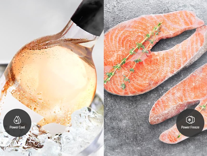 Profitez d’une performance de refroidissement rapide. D’une simple pression sur un bouton, Power Cool souffle de l’air intensément froid dans le réfrigérateur pour refroidir rapidement vos courses ou vos boissons préférées. Power Freeze fournit un jet rapide d’air froid dans le congélateur. Il est idéal pour congeler ou raffermir les aliments surgelés et faire de la glace.