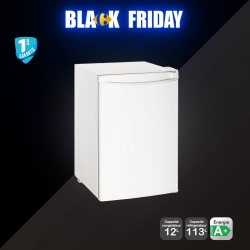 Réglage de la température et dégivrage Manuel. Trois étagères. Emplacement pour glaçons. Capacité du réfrigérateur : 113L et capacité du congélateur : 12L.